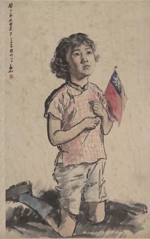 1945年,日本投降。有位中国画家画了一幅画,叫作《爸爸永不回来了》,画中的小姑娘双膝跪倒,仰望青天,意思很清楚:她的父亲在抗战中死掉了。 蒋兆和,《爸爸永不回来了》,1945年 ...
